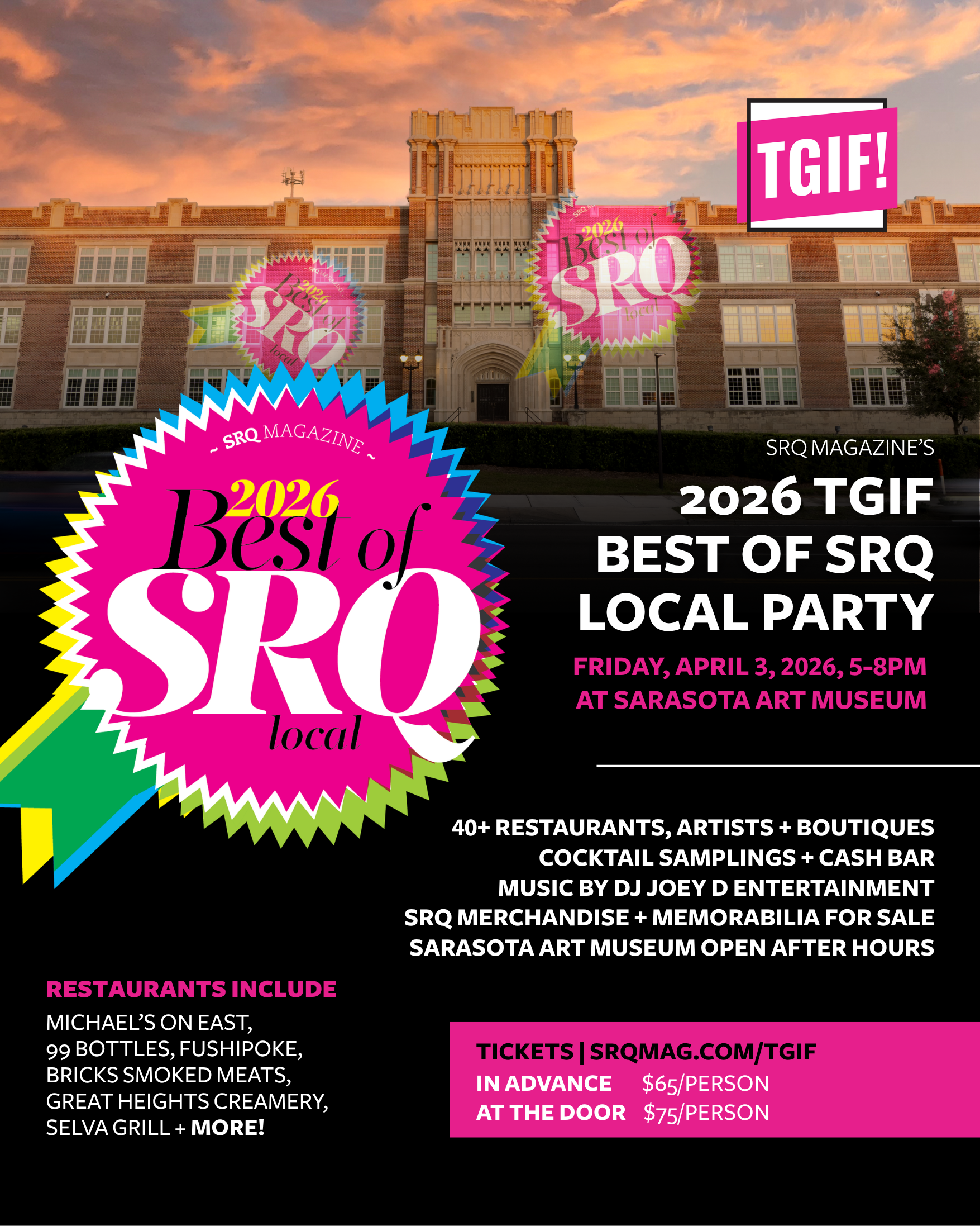 TGIF 2026 | Celebrate the winners, flavors and spirit of our community at SRQ Magazine’s TGIF Best of SRQ Local Party. Enjoy an unforgettable evening with 40+ local restaurants, artist and boutique booths, cocktail samplings, music and more at Sarasota Art Museum. Tickets are $65 in advance and $7...Read more